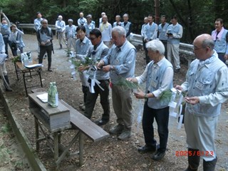 ![]() 除幕式 玉串奉納 ![]() 森開き 乾杯 ![]() 集合写真 林道周辺整備 |