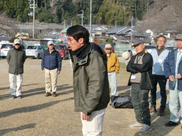 | 穏やかに晴れた2024年の最初の定例活動の幕開けとなりました。定例活動には、51名の会員が元気に参加されました。 本日は、第20期新規会員の18名のうち10名の皆さんが参加され、摂津峡近く三好の里の竹林と 雑木林にてオリエンテーションを実施しました。 |